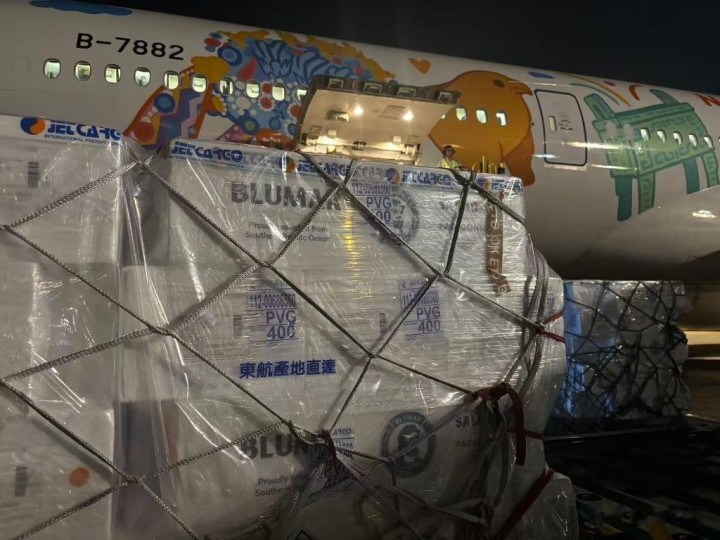 飞机装载车厘子、三文鱼等货物——新华社发
